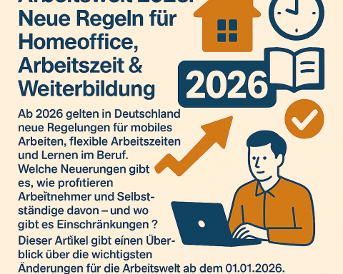 Ab dem 01.01.2026 treten in Deutschland mehrere arbeitsrechtliche und strukturelle Änderungen in Kraft, die den Alltag von Arbeitnehmern und Selbstständigen spürbar beeinflussen. Im Zentrum